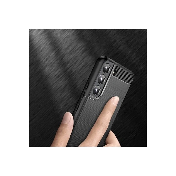 Le motif en carbone et aluminium brossé, placé au dos du boîtier, le rend unique et le distingue des autres étuis.